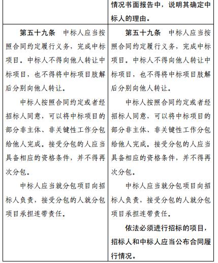 二、第五十九條增加一款,作為第四款:“依法必須進行招標的項目,招標人和中標人應當公布合同履行情況。”