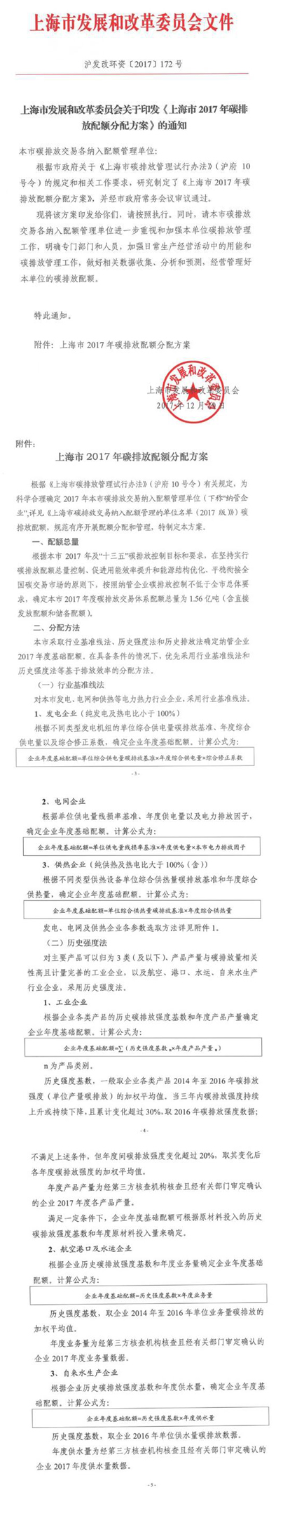 上海發(fā)改委印發(fā)2017碳排放配額分配方案 配額總量為1.56億噸