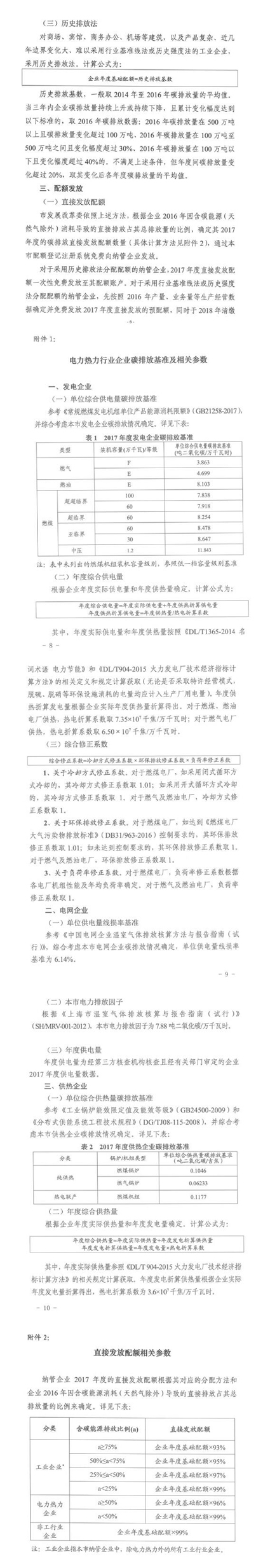 近日,上海市發(fā)改 委印發(fā)了《上海市2017年碳排放配額分配方案》, 方案中確定了上海市2017度碳排放交易體系配額總量為1.56億噸(含直接發(fā)放配額和儲備配額)。上海市采取行業(yè)基準線法、歷史強度法和歷史排放法確定納管企業(yè)2017年度基礎配額。在具備條件的情況下,優(yōu)先采用行業(yè)基準線法和歷史強度法等基于排放效率的分配方法。發(fā)電企業(yè):根據(jù)不同類型發(fā)電機組的單位綜合供電量碳排放基準、年度綜合供電量以及綜合修正系數(shù),確定企業(yè)年度基礎配額。電網(wǎng)企業(yè):根據(jù)單位供電量線損率基準、年度供電量以及電子排放因子,確定企業(yè)年度基礎配額。