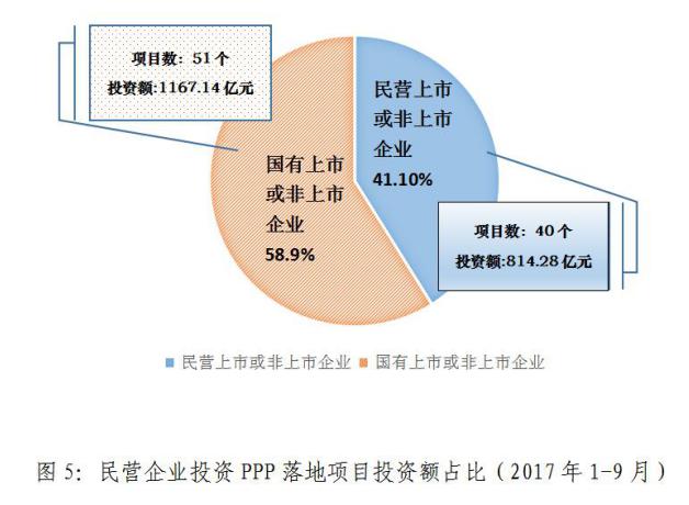 2017年9月,民營企業以聯合體牽頭方或者單獨作為社會資本方落地項目6個。2017年1-9月累計落地項目40個,占43.96%。