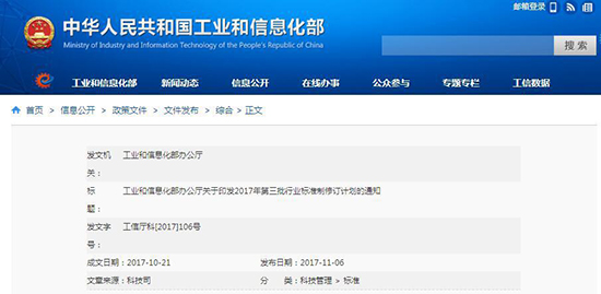 工信部2017年第三批行業(yè)標準制修訂計劃 涉及多項環(huán)保標準