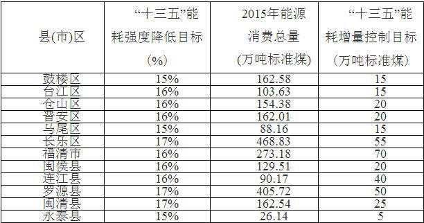 十三五”各縣(市)區能耗總量和強度“雙控”目標