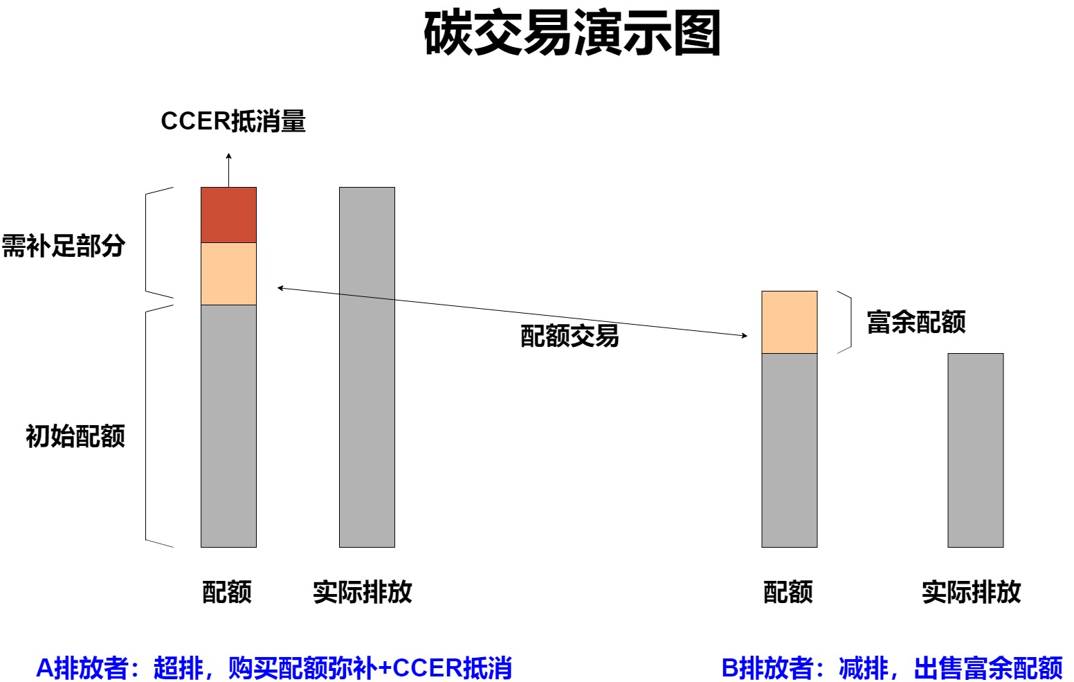 碳交易是碳中和政策下的特殊產物。為了實現(xiàn)碳減排,以后企業(yè)都會實施碳排放配額制,這樣就會產生碳排放的供需錯配,而供需錯配就會衍生出碳交易。而碳交易自然衍生出碳交易市場和碳交易所。