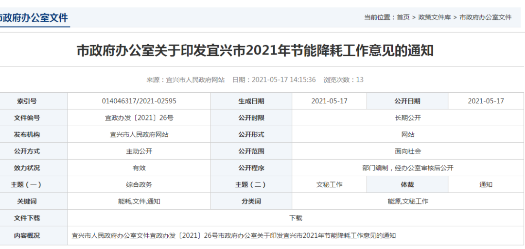 《宜興市2021年節能降耗工作意見》