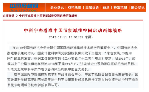 中科宇杰看準(zhǔn)中國(guó)節(jié)能減排空間啟動(dòng)西部戰(zhàn)略
