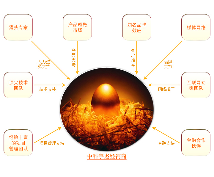 中科宇杰憑著多年的行業運作積累和500多個節能項目管理經驗,結合節能行業的現狀,創造性地提出“節能商學院”式的渠道發展政策,綜合性地為全國有志于投身節能事業的企業、人士提供一個節能行業企業的“孵化器”平臺。此平臺不但在渠道的政策方面,給予經銷商靈活的操作方式,充分發揮不同類型經銷商的優勢和長處,還為經銷商提供行業資訊、技術培訓、商務操作、投融資、人力資源、客戶資源、互聯網支持等方面給予強有力的支持,讓你的投資不但有經濟收益,還能在企業經營方面得到諸多的收益。中科宇杰不但自己做大做強,也幫助我們的合作者成長,共同成為節能行業的翹楚。
