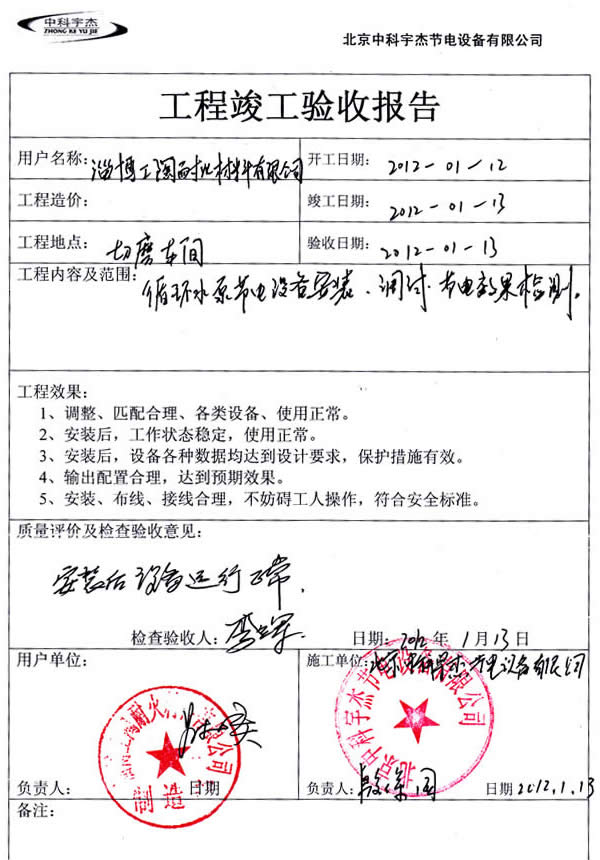 安裝調試并驗收后,顯示節能效率達到27%,投資回報期1.5年,按質保十年計算,此項節能工程能為淄博工陶耐火材料有限公司帶來160萬以上人民幣的直接效益。